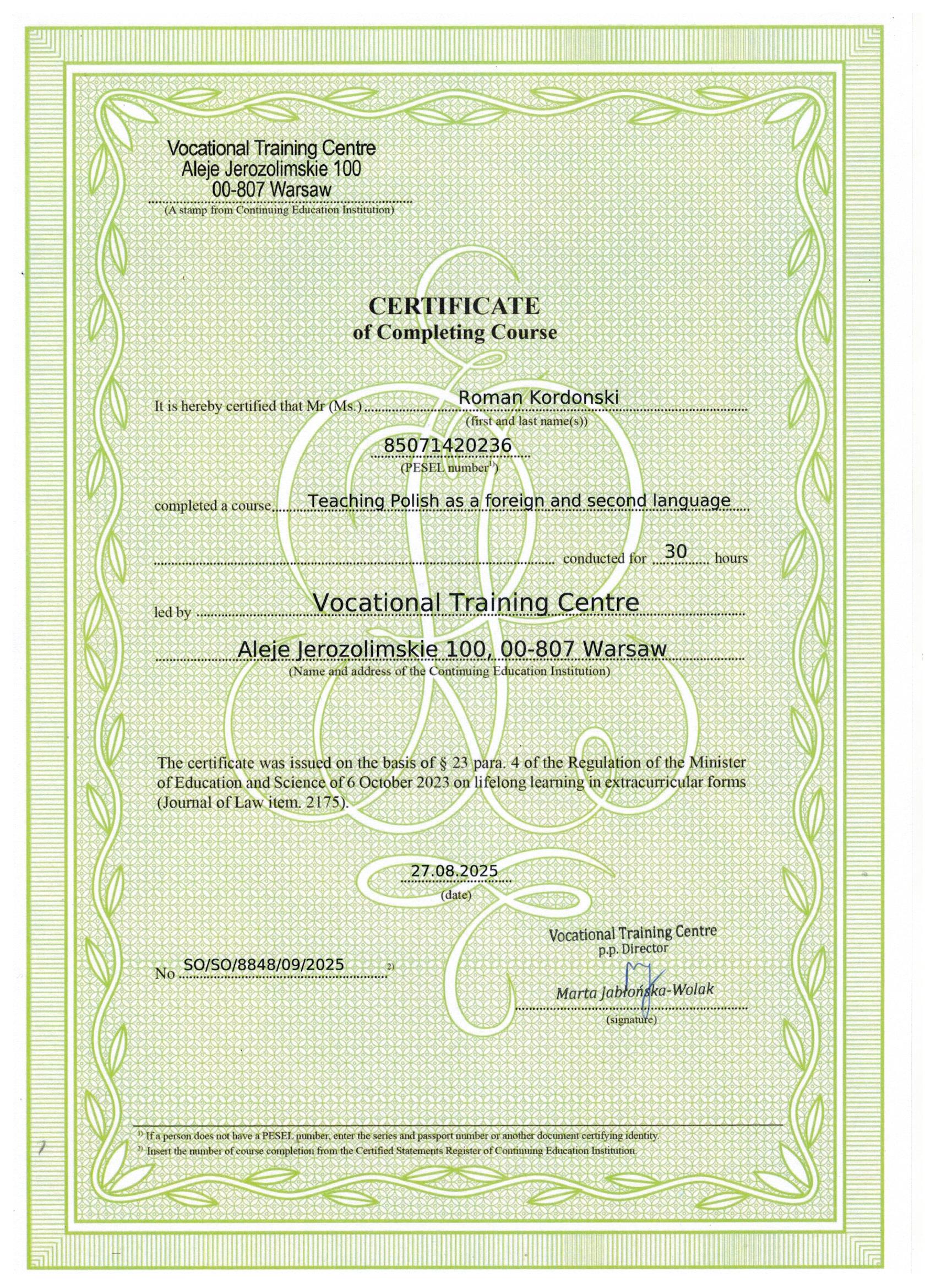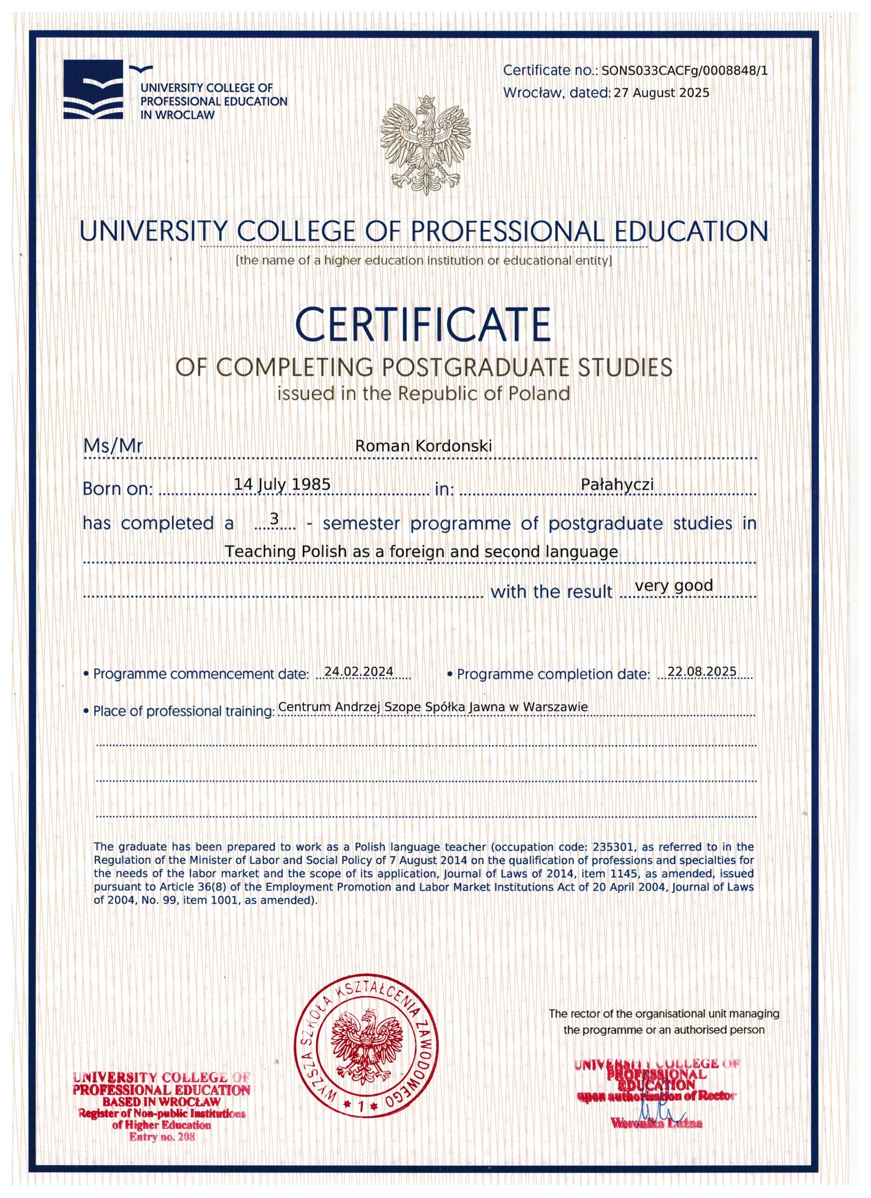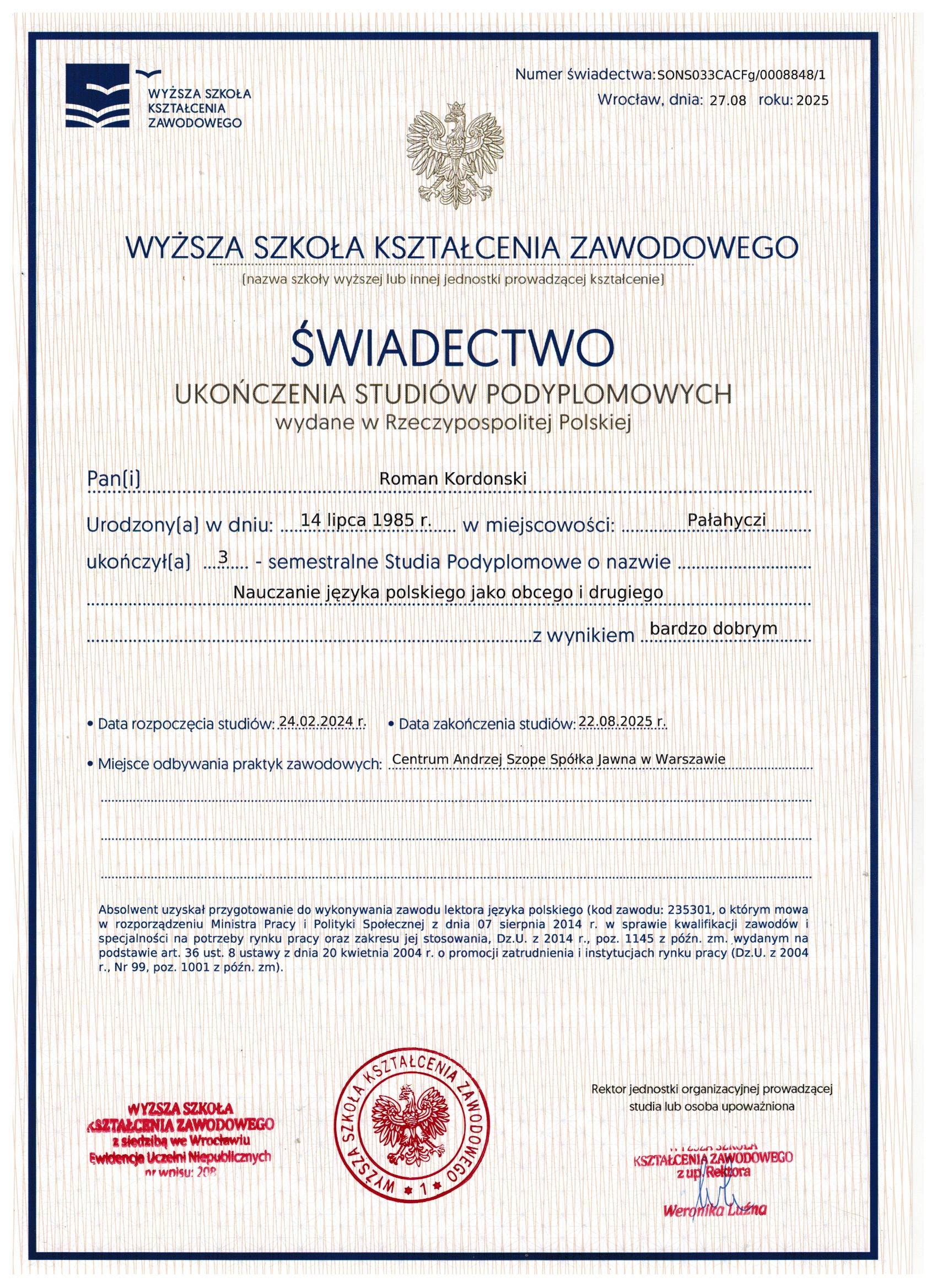 Я — Роман Кордонський, засновник школи польської мови. Навчаю з любов’ю та увагою до кожного студента: допомагаю говорити впевнено, готую до роботи та життя в Польщі і створюю індивідуальні програми під ваші цілі.